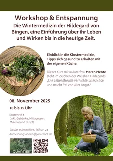 Workshop mit Entspannung: Die Wintermedizin der Hildegard von Bingen, eine Einführung über ihr Leben und Wirken bis in die heutige Zeit.